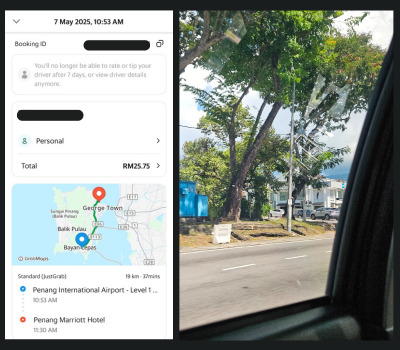 ペナン空港からホテルまでGrabを利用した時の画像です。