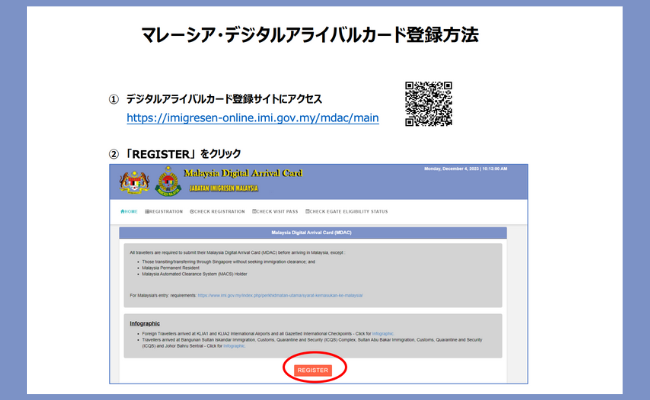 3日前になると、MDAC / マレーシアデジタルアライバルカードに登録ができます。あらかじめ、必要事項を入力しておくと、入国審査がスムーズです。