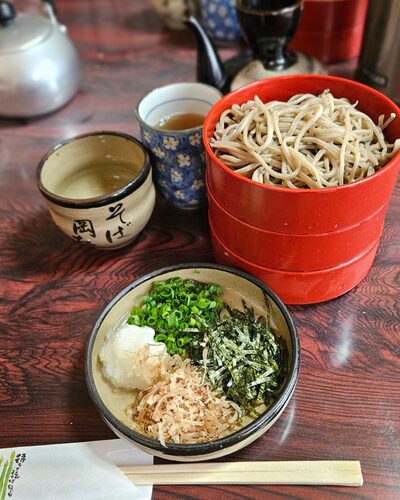 門をくぐるとスタッフの方が声をかけてくださり、「今ならおそば屋さんが空いていますよ」と、近くのおすすめ店を教えてもらいました。