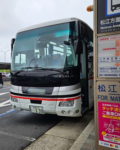 出雲空港から松江駅までは直通バスがあり、レンタカーがなくても、そのまま市内まで移動できます。